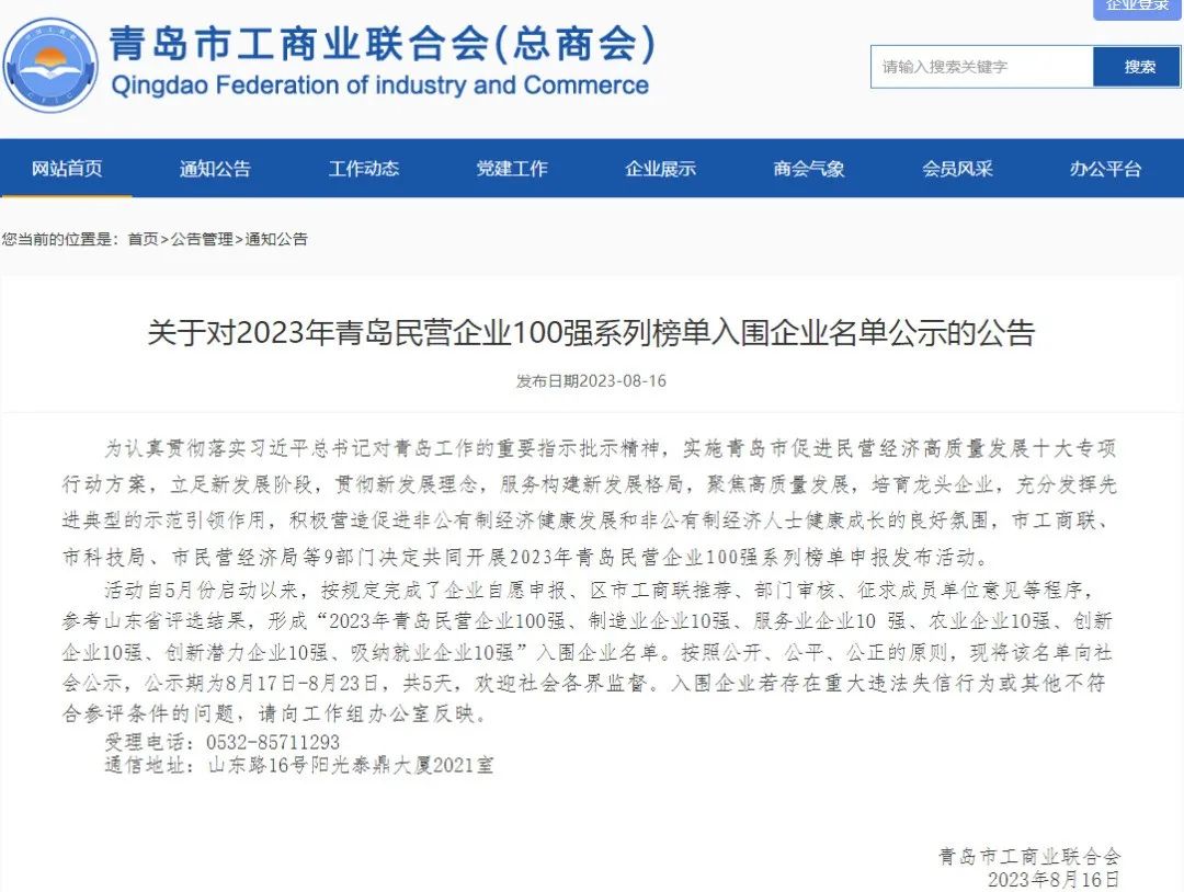近日,2023年山東民營企業(yè)100強系列榜單發(fā)布會隆重召開,會議由山東省工商業(yè)聯(lián)合會、科學技術廳、工業(yè)和信息化廳、農(nóng)業(yè)農(nóng)村廳、人力資源和社會保障廳、商務廳、稅務局、市場監(jiān)督管理局共同發(fā)起。經(jīng)山東省工商業(yè)聯(lián)合會官網(wǎng)公示,銳智智能入圍2023年山東民營企業(yè)創(chuàng)新潛力100強!2023年青島民營企業(yè)創(chuàng)新潛力10強!